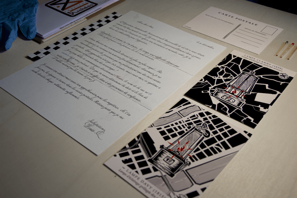 L’institut Archéos est tombé sur un étrange document jusqu’alors oublié : une lettre à laquelle sont jointes 3 cartes postales et un petit paquet. Ces documents semblent donner un point de rendez-vous pour un échange particulier…