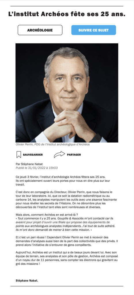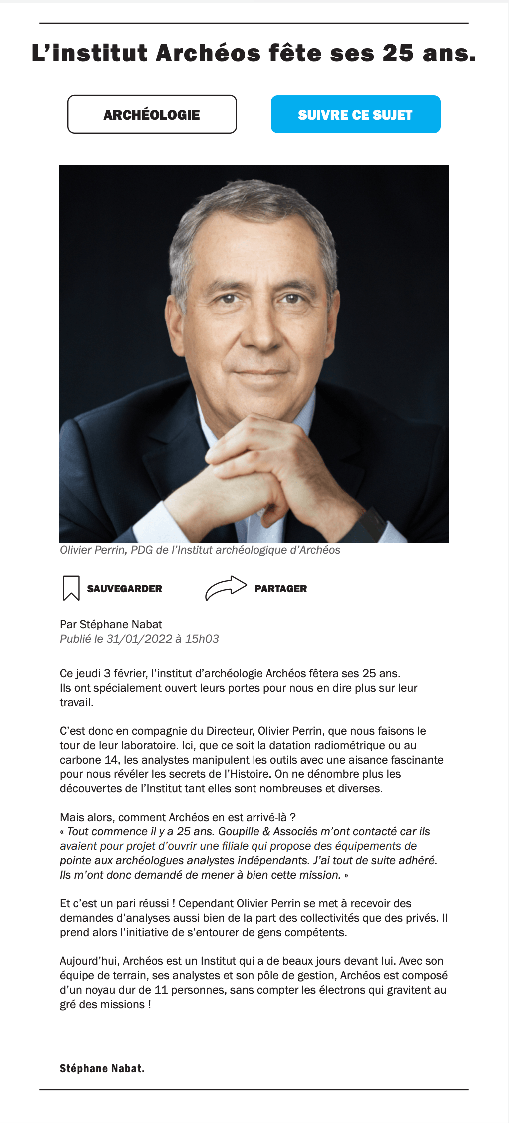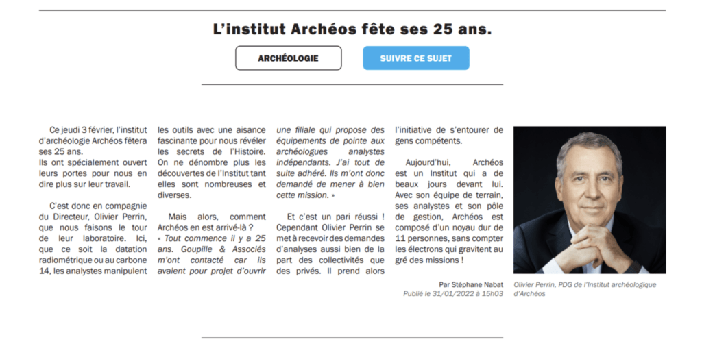 L’Institut Archéos est aujourd’hui reconnu internationalement par ses recherches à travers le monde entier : Grèce, Égypte, États-Unis, Argentine, Chine, Nouvelle-Zélande… le champ d’étude est large puisqu’il s’étend sur toute la planète !